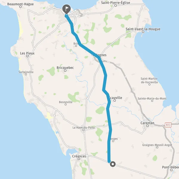 Au rond-point, prendre la 2ème sortie sur N13 (La Banque à Genêts) et continuer sur 650 mètres