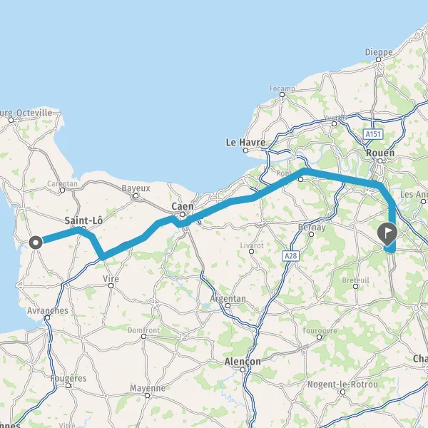 Prendre à droite et rejoindre A84 E401. Continuer sur 45 kilomètres