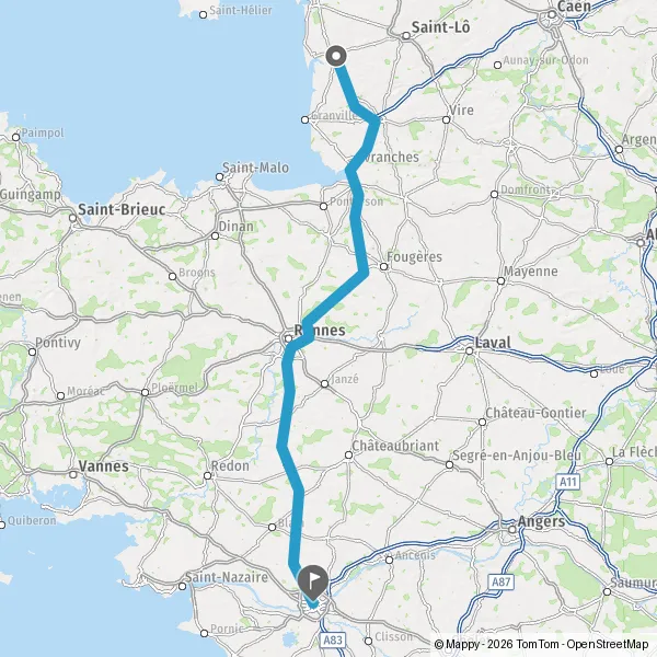 Prendre à droite et rejoindre A84 E3 E401. Continuer sur 92 kilomètres