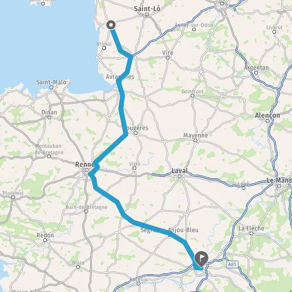 Prendre à droite et rejoindre A84 E3. Continuer sur 11 kilomètres