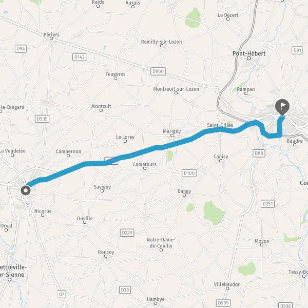 Au rond-point, prendre la 2ème sortie sur D900e3 (Route de Coutances) et continuer sur 650 mètres