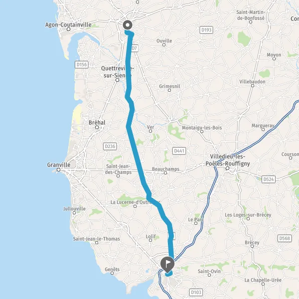 Tourner à gauche sur D20 (Rue Geoffroy de Montbray) et continuer sur 450 mètres