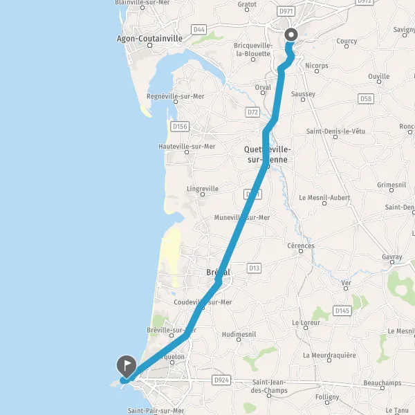 Tourner légèrement à droite sur D971e5 (Route de Coutances) et continuer sur 450 mètres