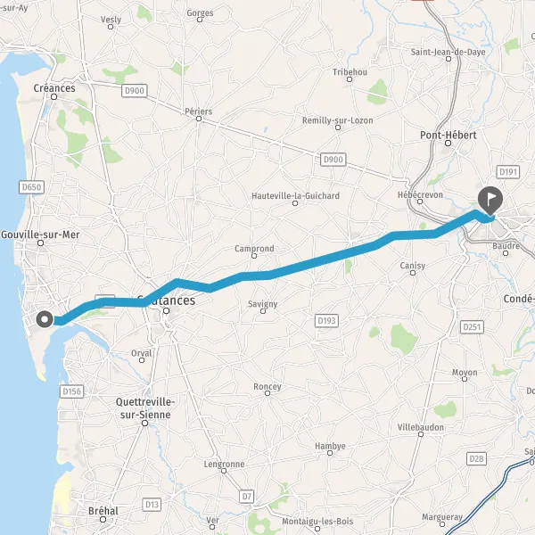 Au rond-point, prendre la 2ème sortie sur D900e3 (Route de Coutances) et continuer sur 650 mètres