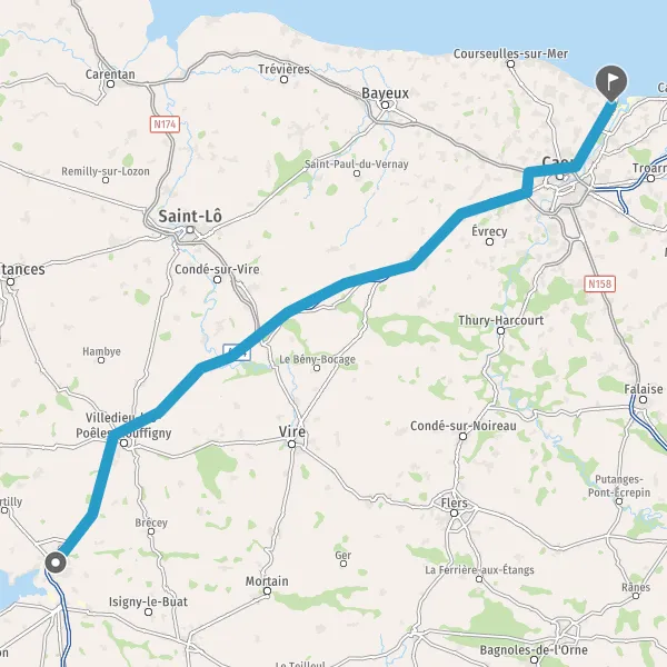 Prendre à gauche et rejoindre A84 E3 E401. Continuer sur 90 kilomètres