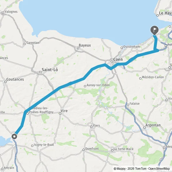 Prendre à gauche et rejoindre A84 E3 E401. Continuer sur 90 kilomètres