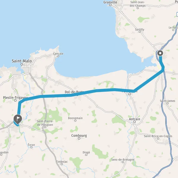 Au rond-point, prendre la 3ème sortie sur D766 (Route de Dinard) et continuer sur 1,5 kilomètre