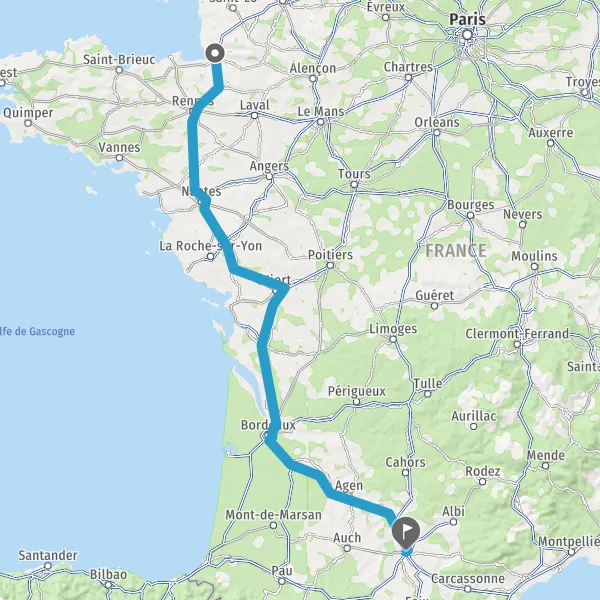 Prendre à gauche et rejoindre A62 E72. Continuer sur 224 kilomètres