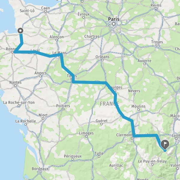 Prendre à droite et rejoindre A85 E604. Continuer sur 106 kilomètres
