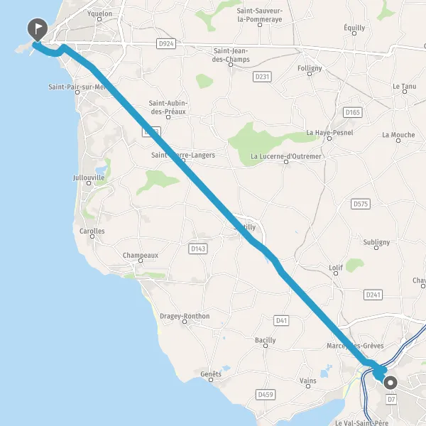 Au rond-point, prendre la 2ème sortie sur D973 (Route de Granville) et continuer sur 2,1 kilomètres