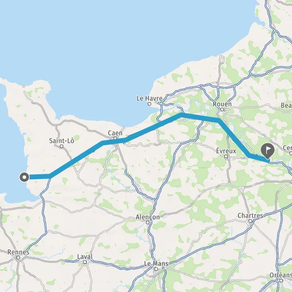 Prendre à droite et rejoindre A84 E3 E401. Continuer sur 72 kilomètres