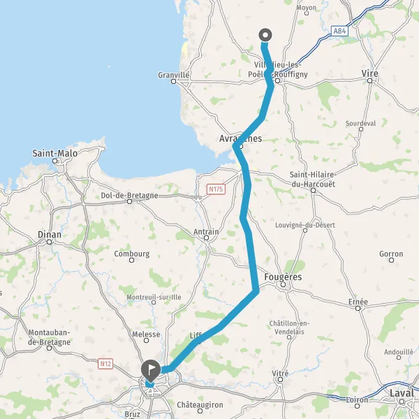 Prendre à droite et rejoindre A84 E3 E401. Continuer sur 92 kilomètres