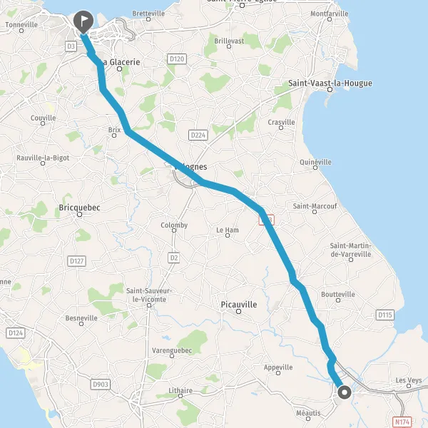 Au rond-point, prendre la 2ème sortie sur D902 (Route de Montebourg) et continuer sur 70 mètres