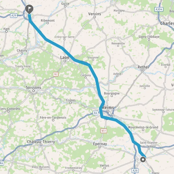 Prendre à droite et rejoindre A26. Continuer sur 88 kilomètres