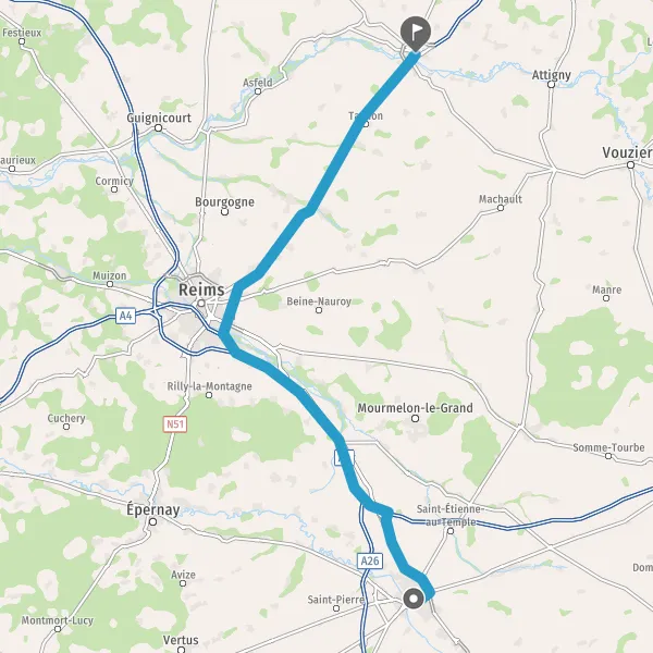 Prendre à droite et rejoindre A4 E50. Continuer sur 26 kilomètres