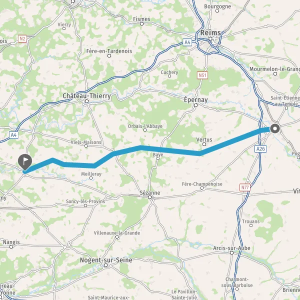 Au rond-point, prendre la 3ème sortie sur D933 (Route de Montmirail) et continuer sur 28 kilomètres