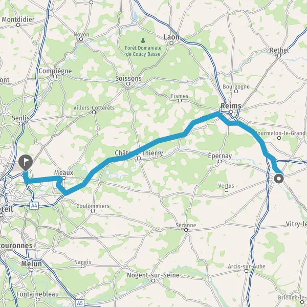 Prendre à droite et rejoindre A4 E50. Continuer sur 39 kilomètres