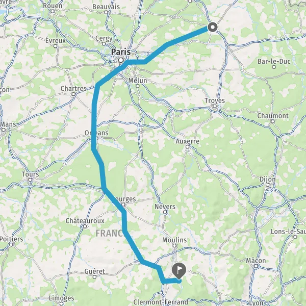 Prendre à droite et rejoindre A719. Continuer sur 22 kilomètres