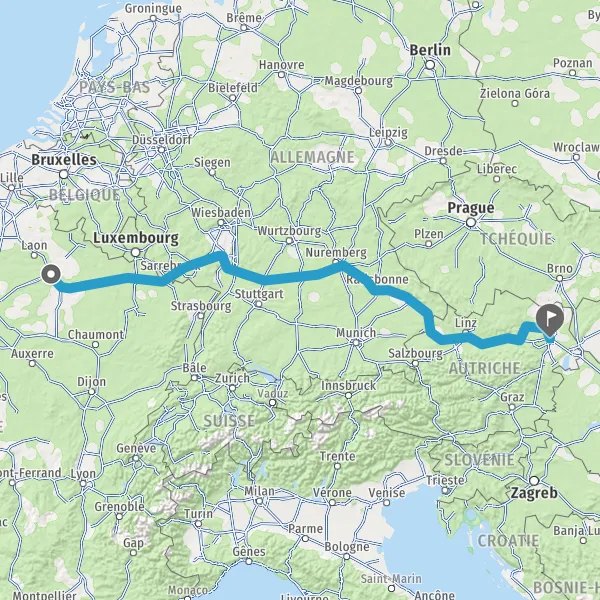 Prendre à droite et rejoindre A3 A3 E56. Continuer sur 217 kilomètres