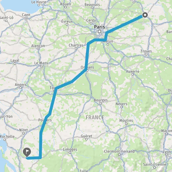 Continuer E5 (L'Aquitaine) sur 284 kilomètres