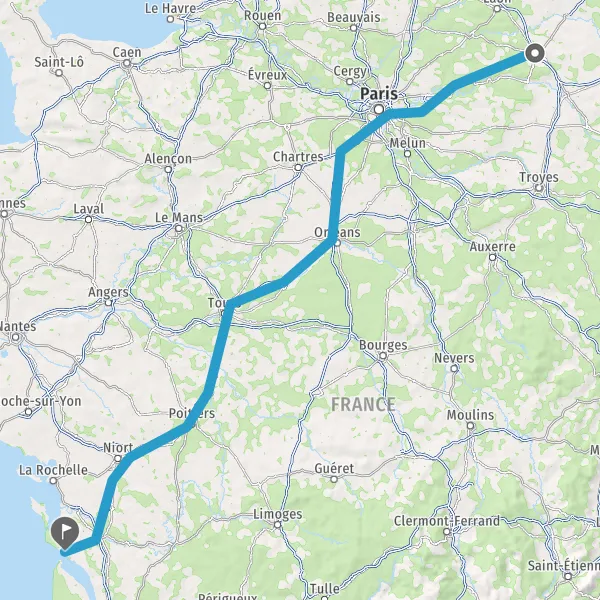 Continuer E5 (L'Aquitaine) sur 412 kilomètres