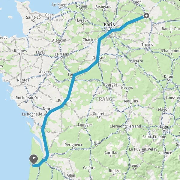 Continuer E5 (L'Aquitaine) sur 516 kilomètres
