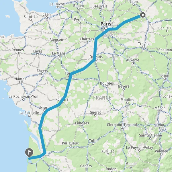 Continuer E5 (L'Aquitaine) sur 531 kilomètres