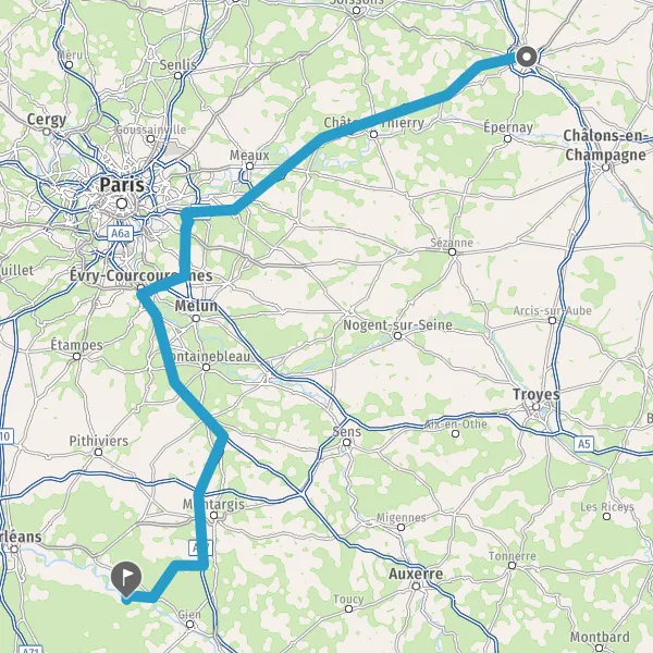 Prendre à droite et rejoindre A6 E15. Continuer sur 53 kilomètres