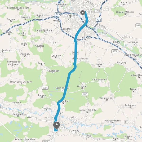 Tourner légèrement à droite sur D40 (Rue de l'Hôpital Auban Moët) et continuer sur 700 mètres