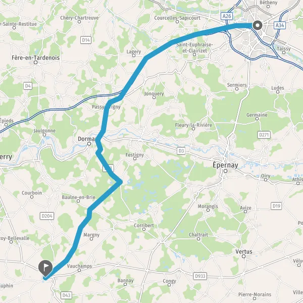 Prendre à droite et rejoindre A4 E50. Continuer sur 21 kilomètres