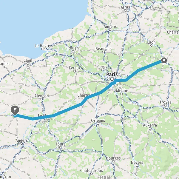 Prendre à droite et rejoindre A11 E50. Continuer sur 147 kilomètres