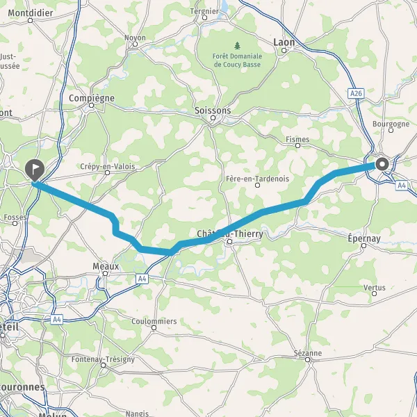 Prendre à droite et rejoindre A4 E50. Continuer sur 90 kilomètres