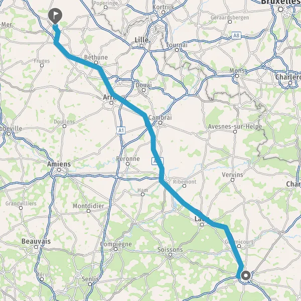 Prendre à droite et rejoindre A26. Continuer sur 221 kilomètres