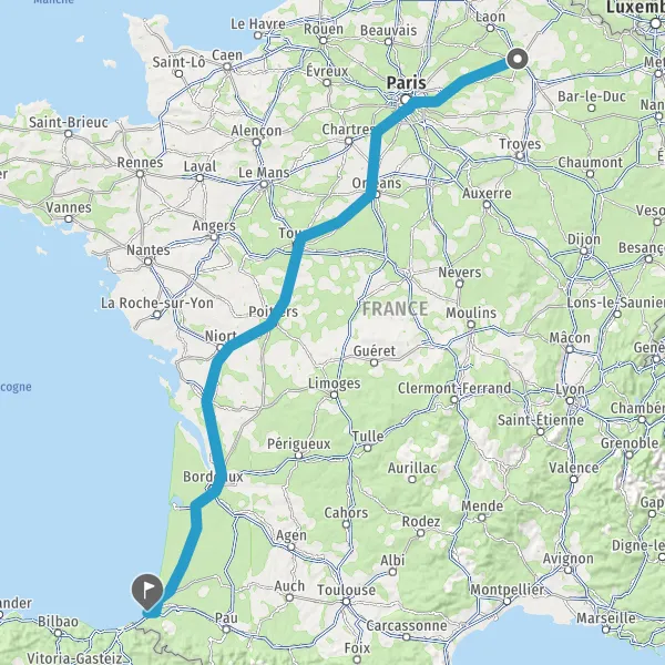 Continuer E5 (L'Aquitaine) sur 516 kilomètres
