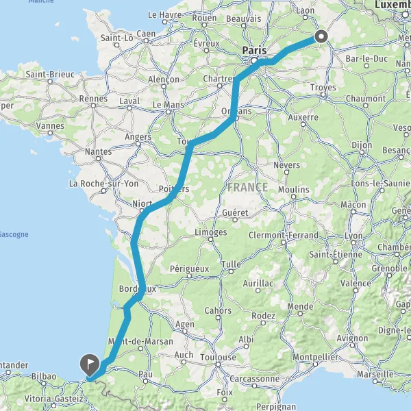 Prendre à droite et rejoindre A63. Continuer sur 205 kilomètres