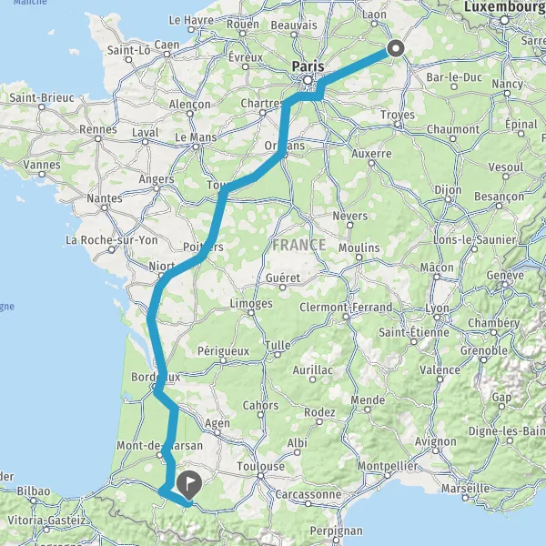 Prendre à droite et rejoindre A65. Continuer sur 149 kilomètres