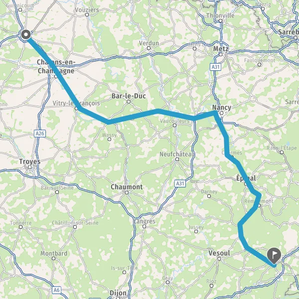 Au rond-point, prendre la 3ème sortie sur N19 (Route de Vesoul) et continuer sur 23 kilomètres