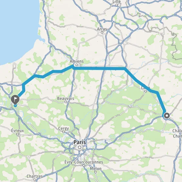 Prendre à droite et rejoindre A28 E402. Continuer sur 22 kilomètres