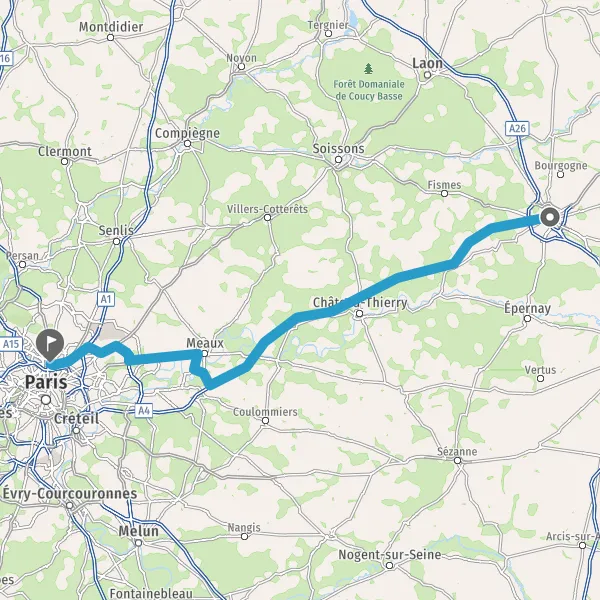 Prendre à droite et rejoindre A4 E50. Continuer sur 90 kilomètres