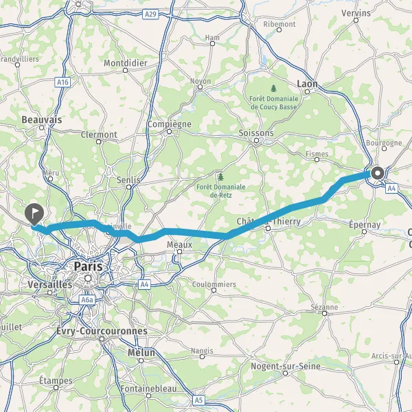 Prendre à droite et rejoindre A4 E50. Continuer sur 113 kilomètres