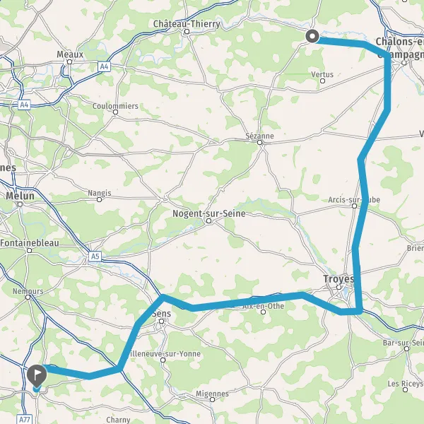 Prendre à droite et rejoindre A5. Continuer sur 69 kilomètres