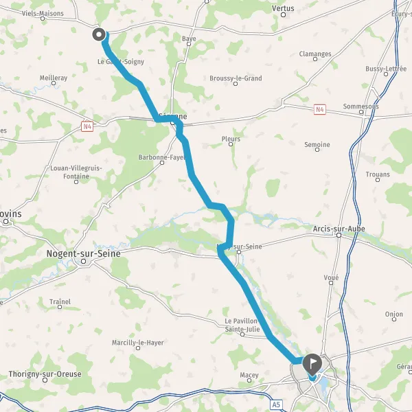 Tourner à droite sur D5 (Route de Marsangis) et continuer sur 25 mètres