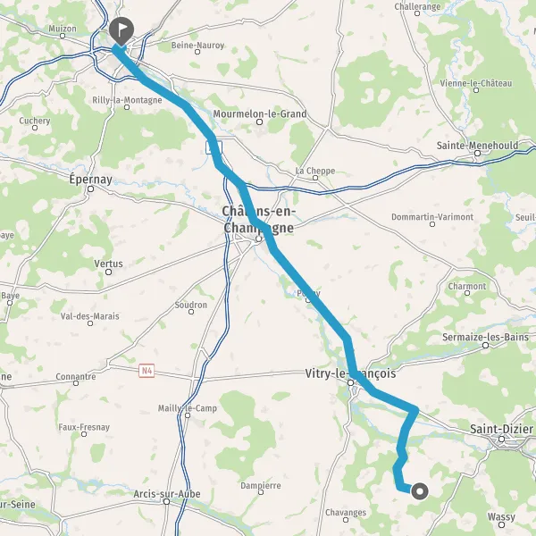 Prendre D13 (Rue du Grand Der) et continuer sur 4,8 kilomètres