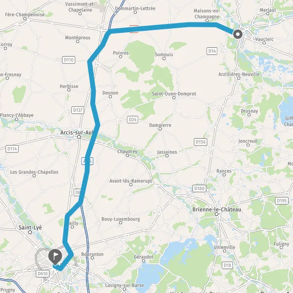 Continuer D5 D107 (Route de Troyes) sur 18 kilomètres