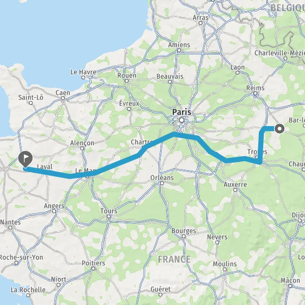 Prendre à droite et rejoindre A11 E50. Continuer sur 147 kilomètres