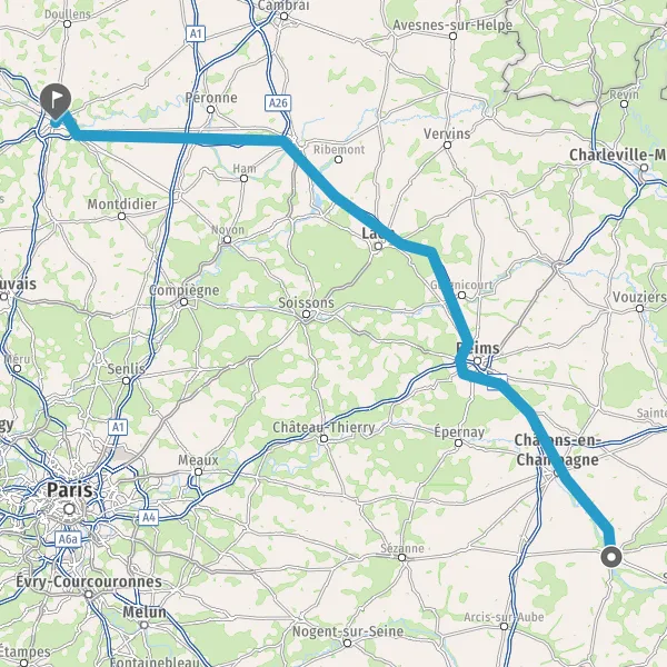 Prendre à droite et rejoindre A26. Continuer sur 94 kilomètres