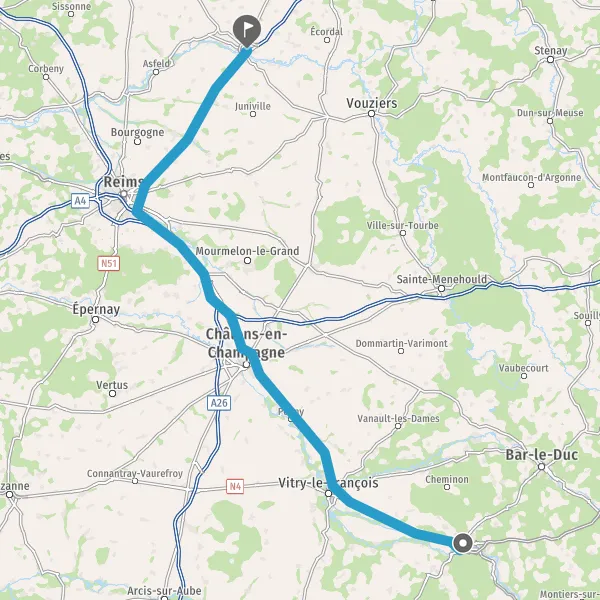 Prendre à droite et rejoindre A4 E50. Continuer sur 26 kilomètres