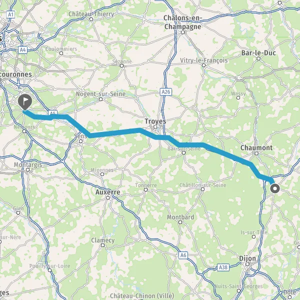 Prendre à droite et rejoindre A5. Continuer sur 187 kilomètres
