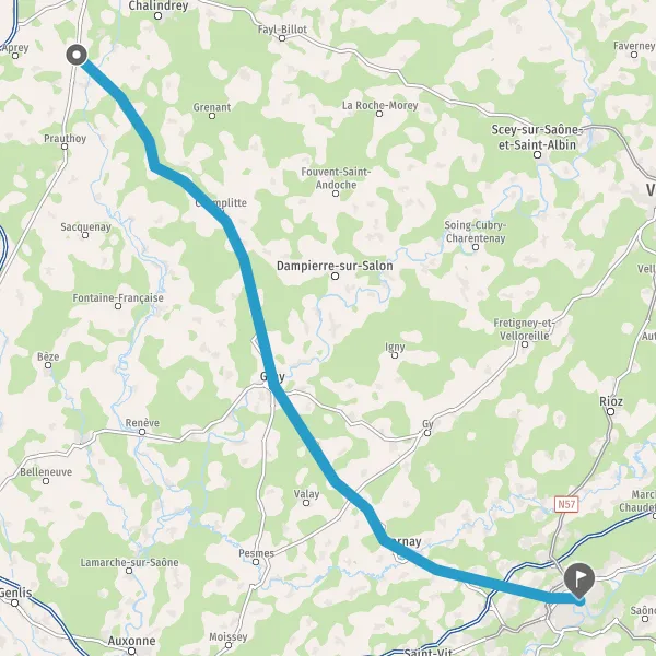 Au rond-point, prendre la 3ème sortie sur D70 (Route de Gray) et continuer sur 2,1 kilomètres