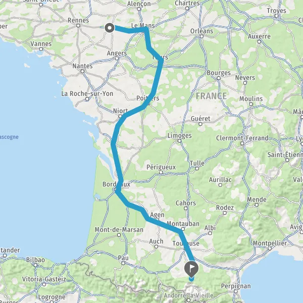 Prendre à gauche et rejoindre A62 E72. Continuer sur 224 kilomètres
